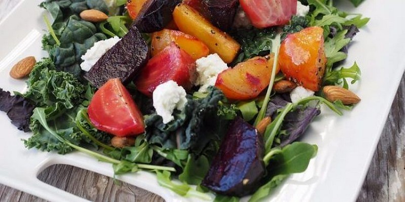 Bieti noskalojiet, ietiniet folijā un cepiet cepeškrāsnī 180 grādos apmēram 40 minūtes. Tad atdzesējiet un sagriežat kubiņos. Sagriežat tomātiņus, sasmalciniet riekstus. Salaužat gabaliņos fetas sieru, sapluciniet salātus. Sajauciet visas sastāvdaļas un pievienojiet eļļu.